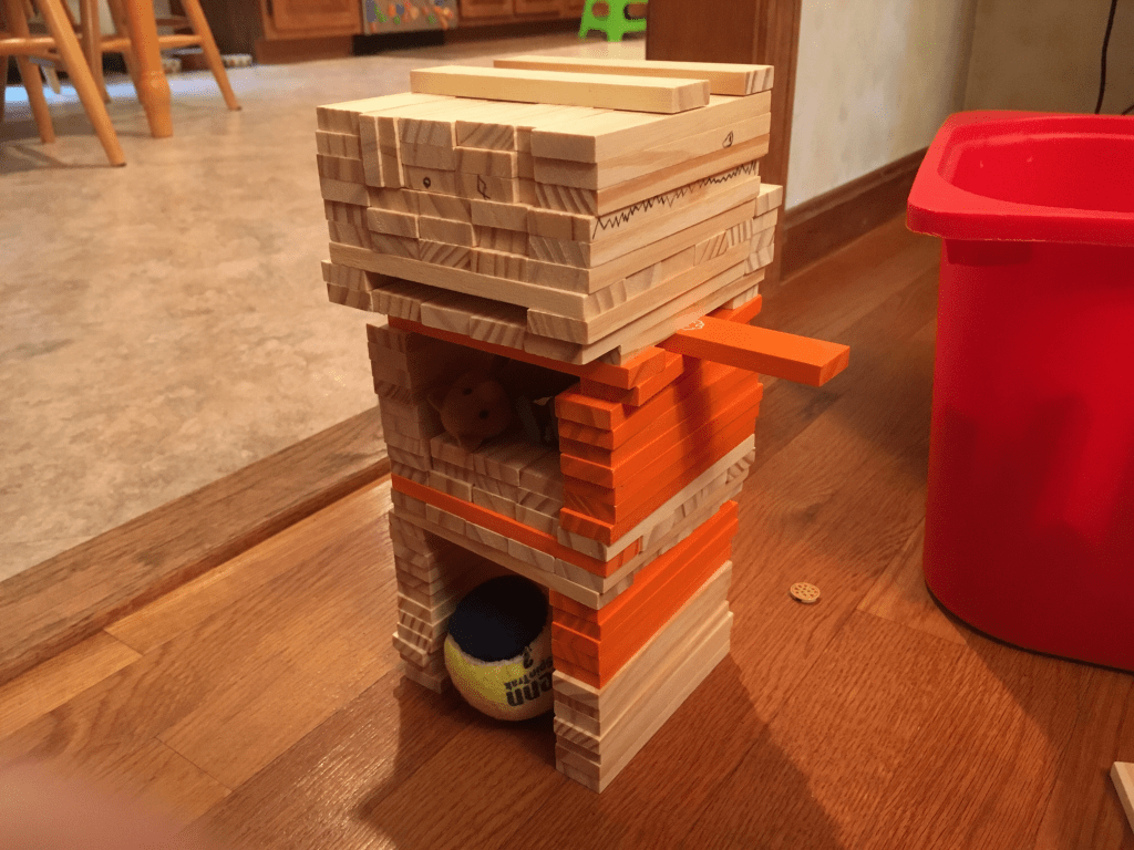 After lunch on Mondays, we do a Building Challenge. I give the kids a picture of a famous building, or give them a problem to solve as a prompt, and they have to create the relevant structure with whatever materials they choose. Recently, a reading about the Trojan horse inspired an attempted model of one, which soon inspired a “Trojan dinosaur” complete with a compartment to hide the Greek soldiers (?!).