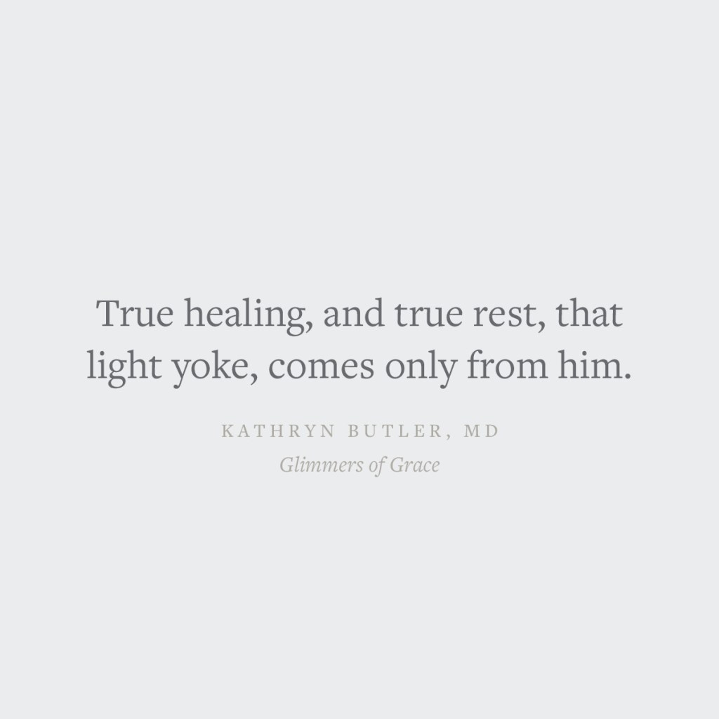Dear friend in Christ, when the pain sears through your limbs or clutches your heart, cling to that promise. Harbor God’s word in your heart, so that when the blades of illness and death assail you, you can call upon the truth to cover you as an impenetrable shield (Eph. 6:16–17). We cannot explain away the tragedies that befall us or assuage them with our own meager words, but God’s word, eternal, issuing forth in love, cures all ills. He gives us medicine as a means of grace, an extension of his love for mankind. But true healing, and true rest, that light yoke, comes only from him.