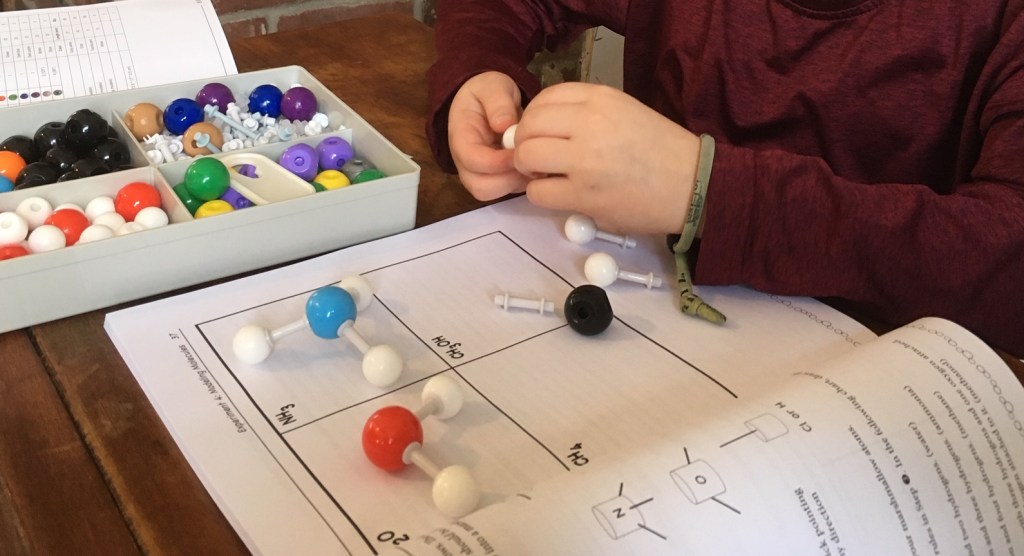 After we finish, Bean does some lessons on DuoLingo and then some drawing lessons or painting (see above), while Pip and I have 1:1 time, which right now looks as I’ve outlined below. Yes, he’s doing chemistry in third grade! Again, this is one of the joys. He took an interest in chemistry early in the year, and his enthusiasm has made tackling the subject fun and doable rather than drudgery: