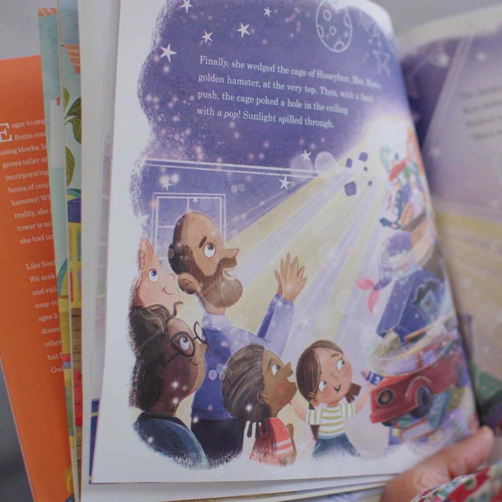 Sonia dreams of being just as talented as the other kids in her class. Hoping to impress her teacher, she constructs a tower using blocks. As she imagines it growing taller and taller, she eventually incorporates books, a fire truck, boxes of crayons, and even a golden hamster! When she snaps back to reality, she is disappointed to find that her tower is not nearly as impressive as she had imagined.